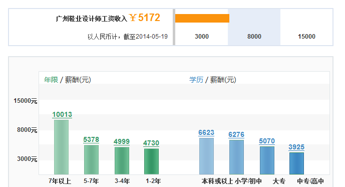 而對(duì)于其的要求也比較嚴(yán)格,有一定的美術(shù)功底,對(duì)于時(shí)尚流行元素必須有自己的見解,設(shè)計(jì)的鞋子必須是掌控當(dāng)年的潮流趨勢(shì)的,藝術(shù)審美等這些要求會(huì)比較多。這樣一個(gè)重要的崗位,在廣州的工資收入情況是: